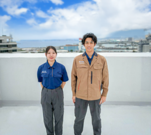 新ユニフォームは、作業着としての機能性に加え、営業・商談・お客様宅への訪問にも配慮したデザインを採用。耐久性や動きやすさ、速乾性を兼ね備えた素材を使用し、さらにブルゾン背面には反射材を配置、胸部には防災時に居場所を知らせる笛付きファスナーを取り入れることで、デザイン性・快適性・安全性を追求しております。